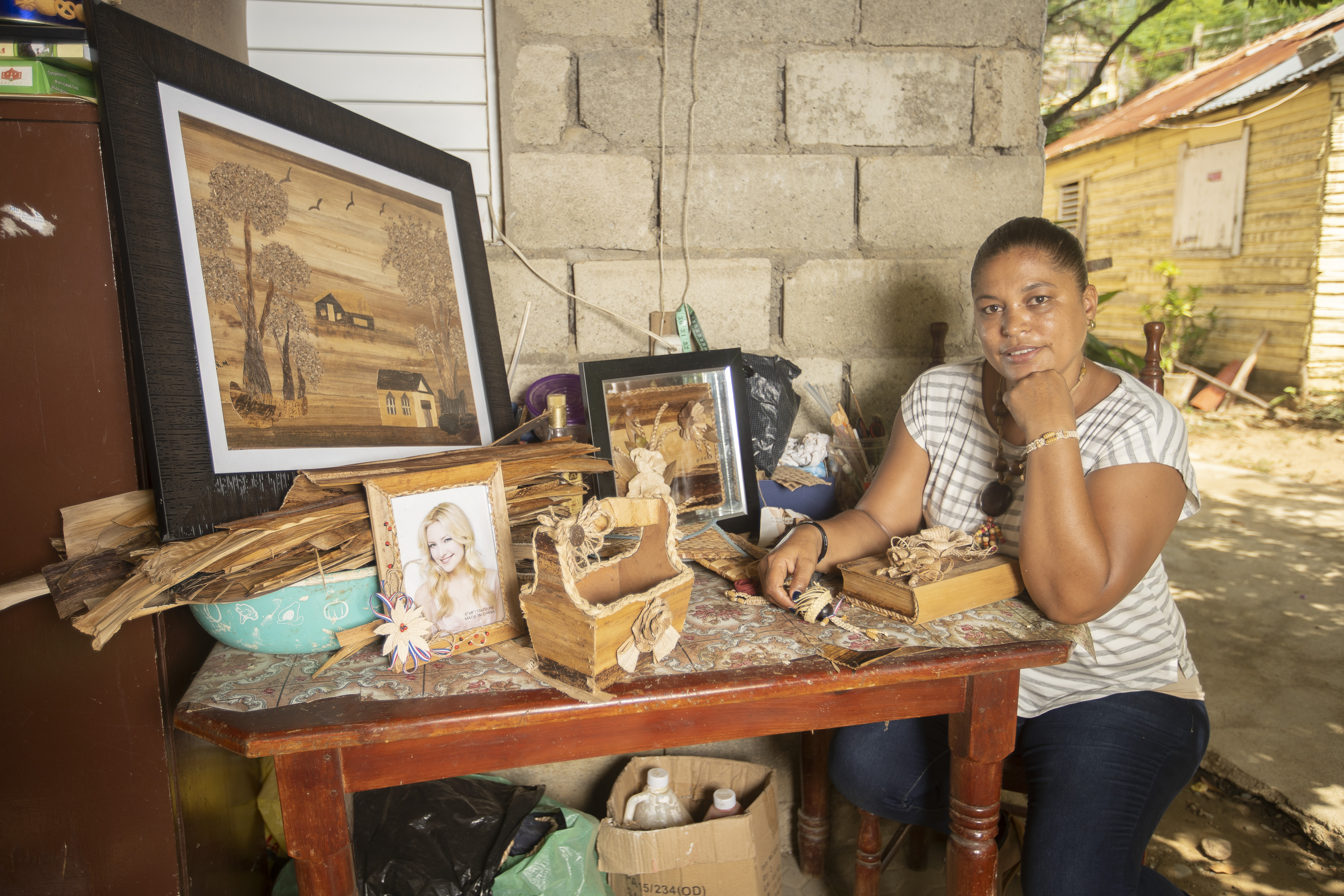 Ella vio en los desechos orgánicos lo que nadie ve: un arte. Sus creaciones llaman la atención de todo el que pasa por su taller y la artesanía que elabora es tan delicada que la fibra de banano es imperceptible para los clientes, que se acercan hasta su taller para poner su granito de arena en el progreso de la familia de Renata y también, quizás sin saberlo, en el cuidado del medio ambiente.