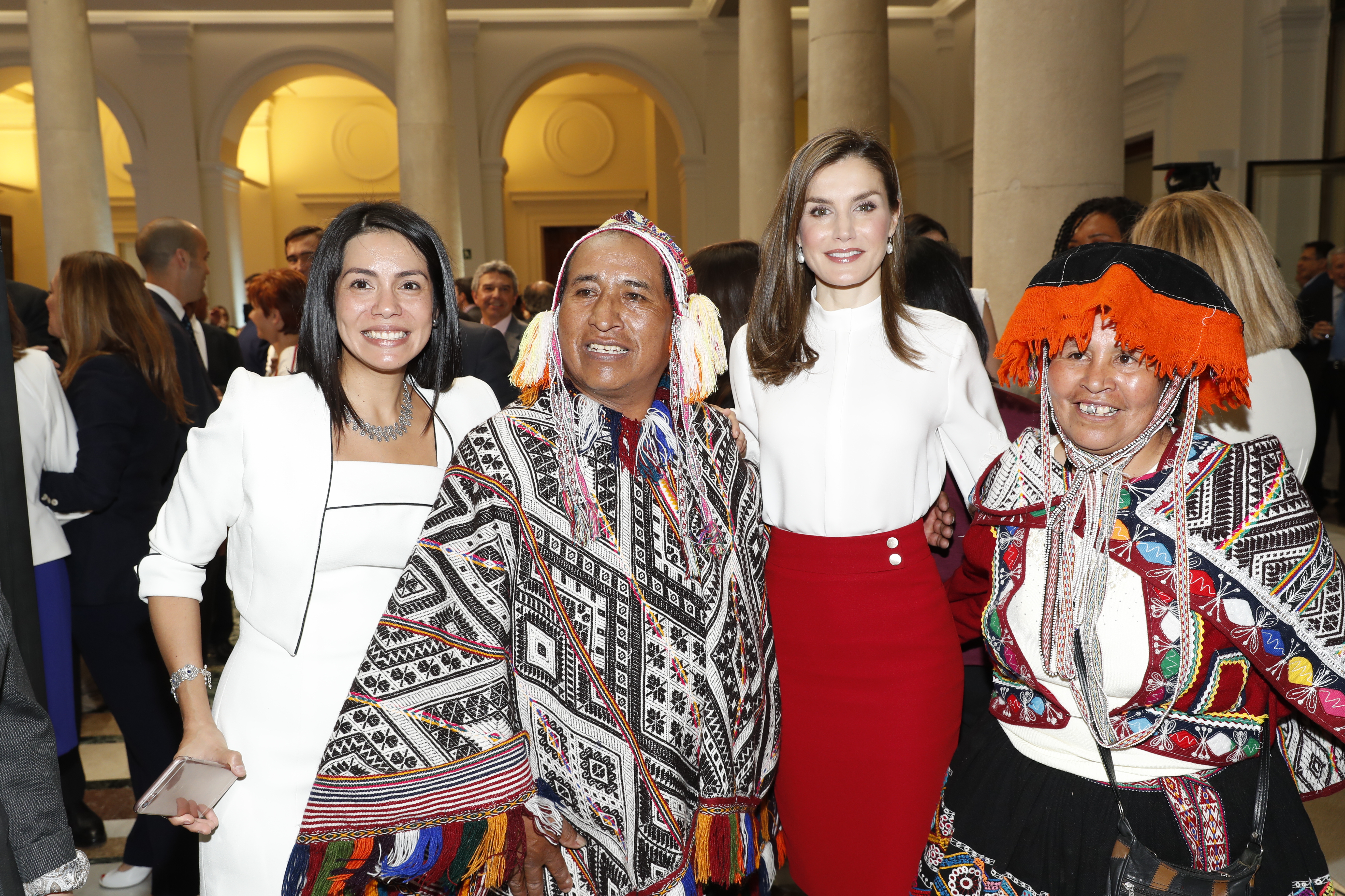 - The Queen with entrepreneurs (Diana and Rosa) and María Noel Vaeza, UN Women, Gema Sacristán, IDB Group and Rebeca Grynspan, SEGIB