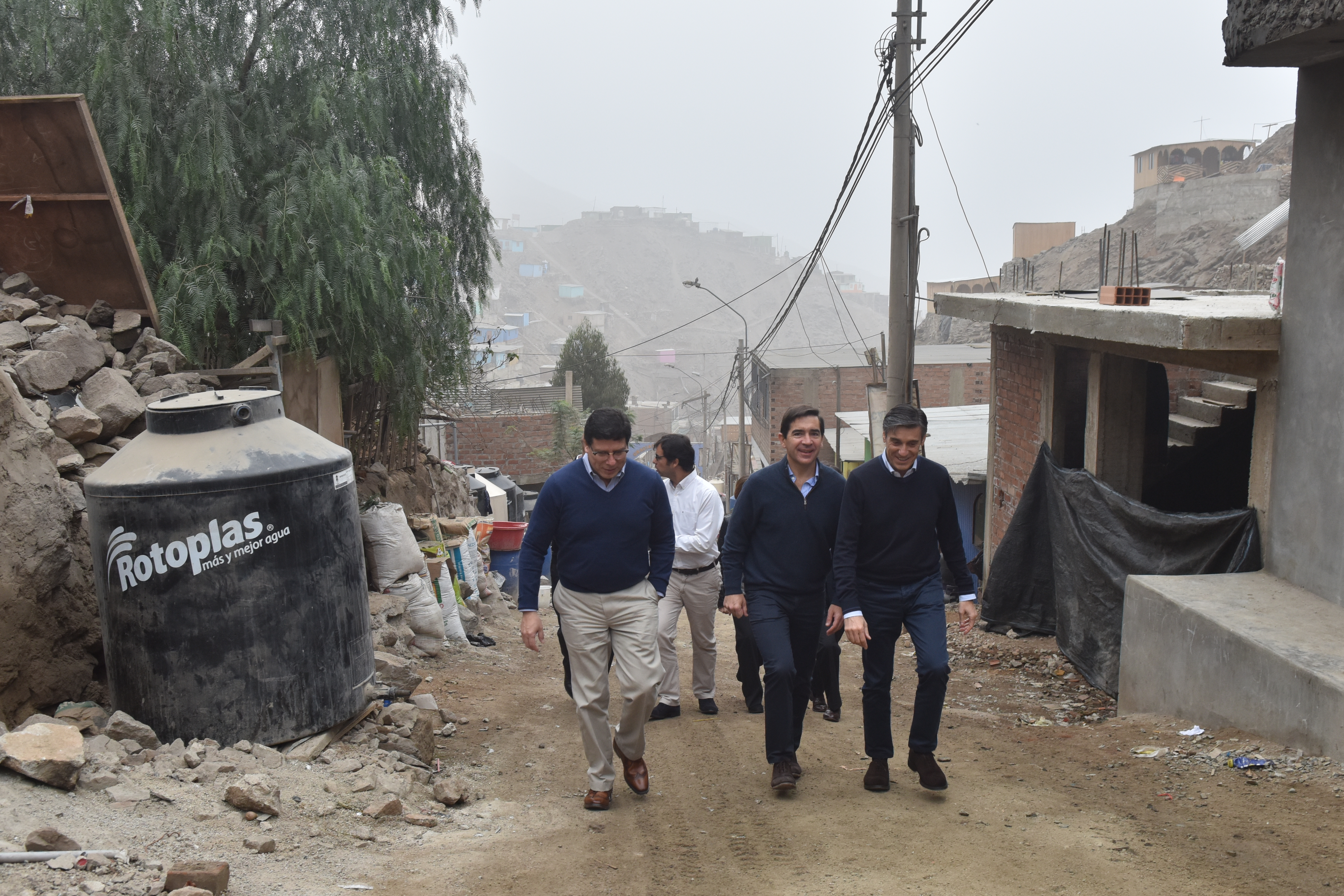 - Martín Naranjo, General Manager of Financiera Confianza, Carlos Torres, BBVA CEO and Javier Flores, FMBBVA CEO in San Juan de Lurigancho, Peru