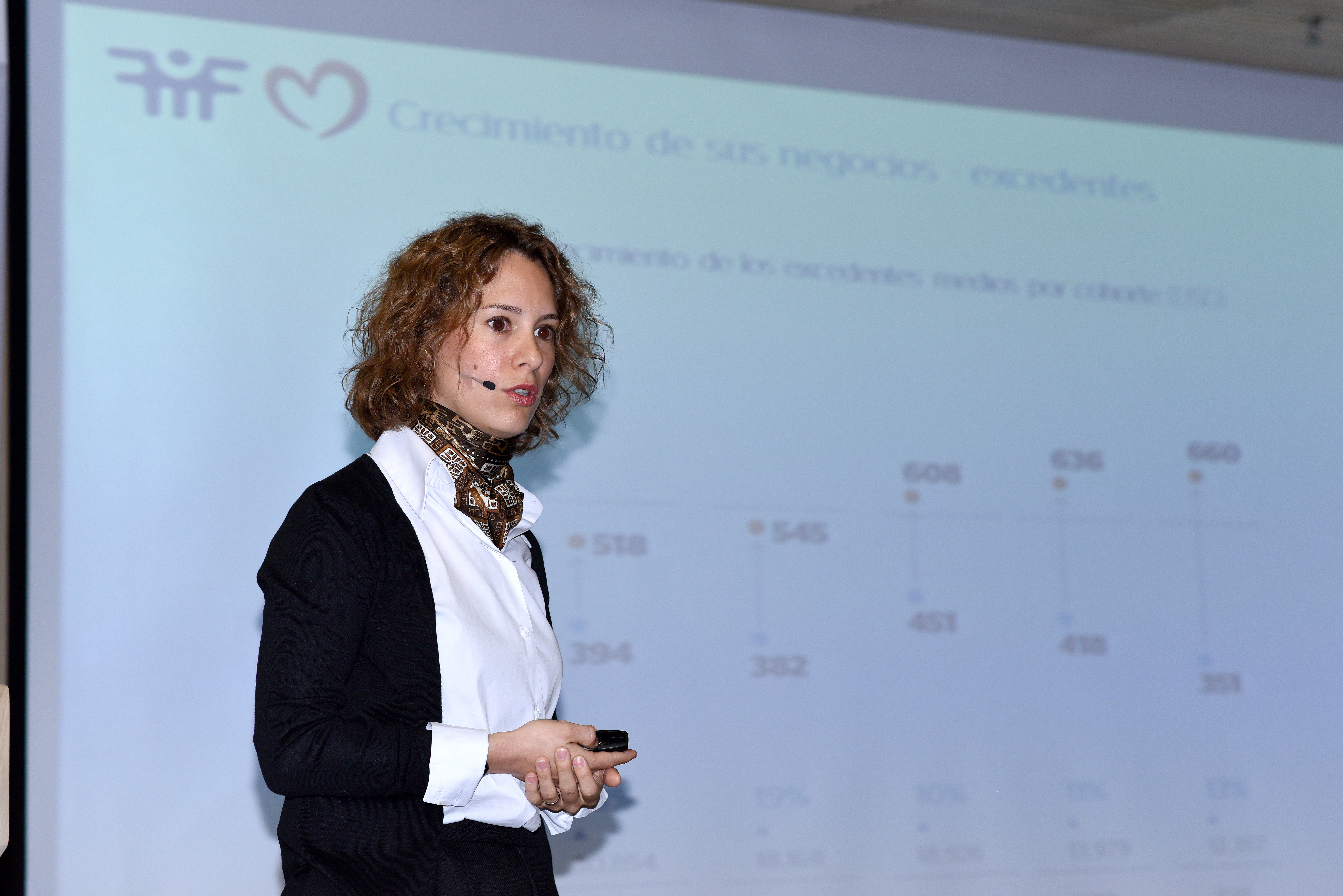 - The president of Asomicrofinanzas, María Clara Hoyos, during her panel intervention