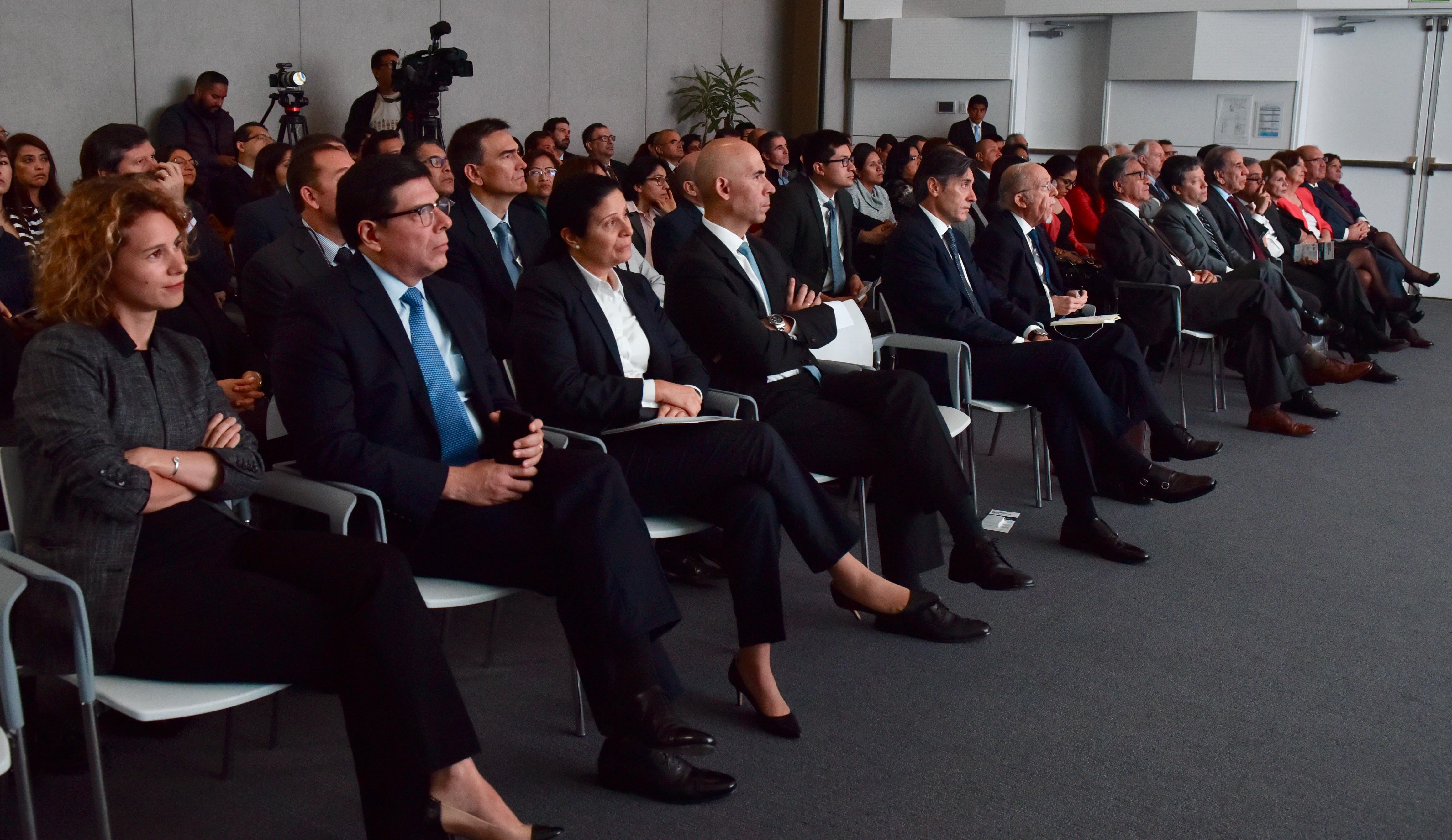 From left to right: Eduardo Torres-Llosa, BBVA Continental CEO; Claudio González-Vega, BBVAMF Chairman of the Board of Trustees; Socorro Heysen, Peru’s Superintendent of Banking, Insurance and Pension Funds; Javier Flores, BBVAMF CEO; Cayetana Aljovín, Peru’s Minister for Development and Social Inclusion; and Martín Naranjo, Managing Director of Financiera Confianza