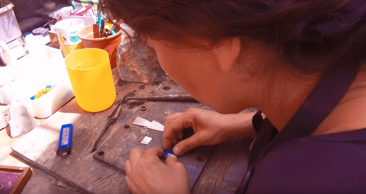 - Cristian’s wife, working on a piece of mineral