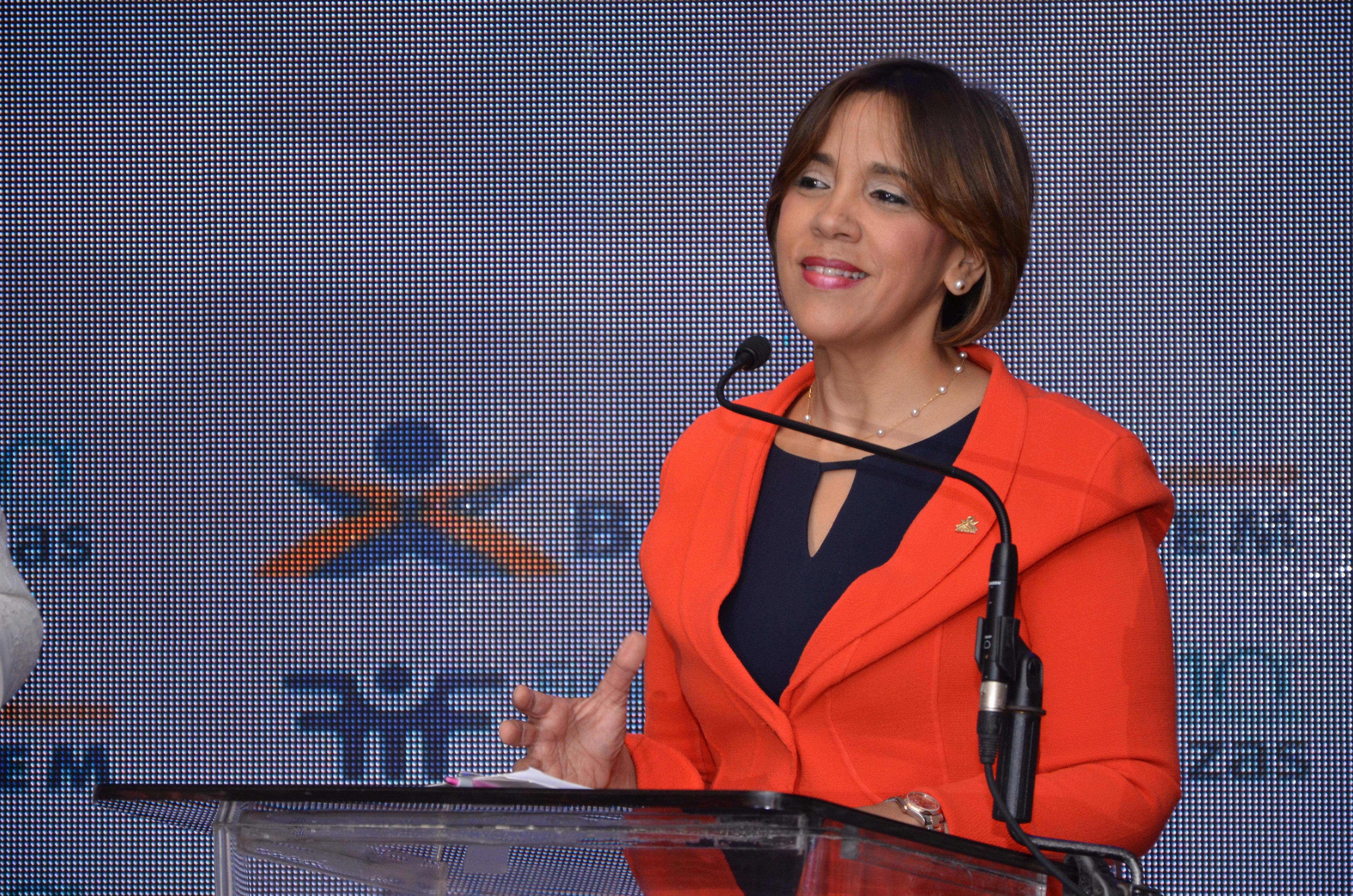 - Mercedes Canalda, presidenta ejecutiva de Banco Adopem, durante su intervención en la presentación del informe anual de la FMBBVA en República Dominicana