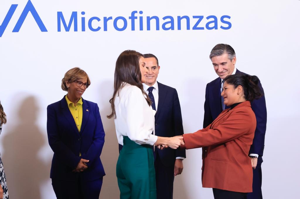 - María Jorge con la Reina y su asesor microfinanciero, Rony