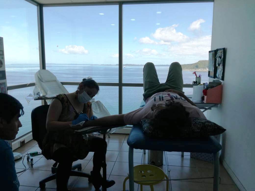 Uno fácilmente puede imaginarse como es el día a día de Roda Body Art, un estudio de decoración corporal en el municipio de Puerto Montt, situado en la región chilena de Los Lagos. Su página web, su perfil de Facebook o Instagram trasladan a todo aquel que los visite a este pequeño local con vistas al mar. Casi se puede sentir a través de sus fotos el nerviosismo de los primerizos en tatuajes y piercings y la veteranía de otros, tranquilamente hablando con los tatuadores eligiendo su próximo diseño. Seguro que tampoco es extraño encontrarse con algún curioso delante del ventanal, boquiabierto mientras observa cómo las personas se cubren de dibujos y perforaciones.