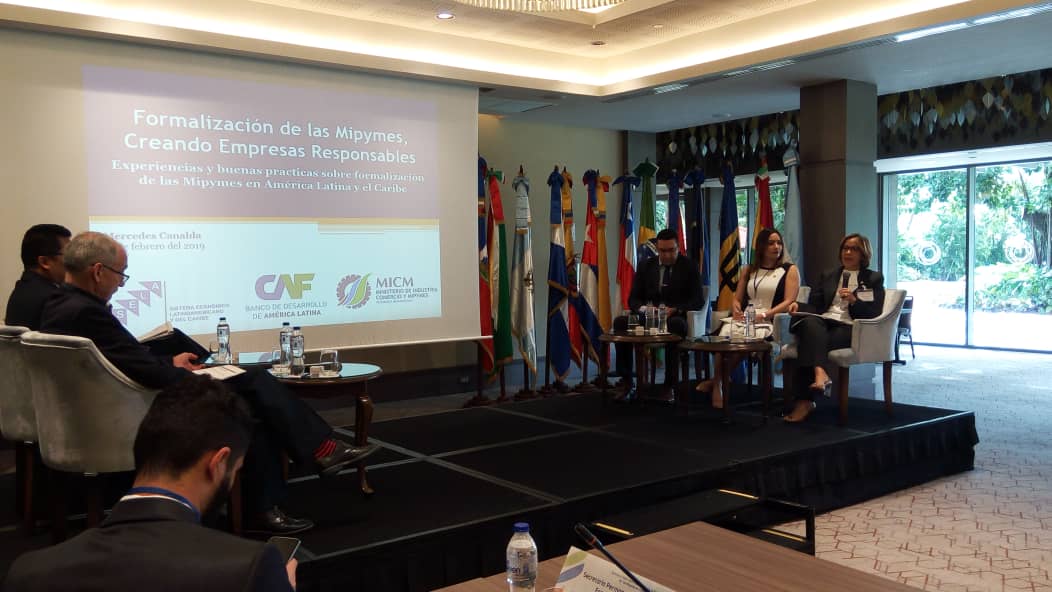 En la misma sesión, participaron el Centro para la Promoción de la Micro y Pequeña Empresa en Centroamérica (CENPROMYPE), el Instituto Nacional del Emprendedor (Secretaría de Economía de México), el Programa Nacional de Competitividad (Guatemala) y la Cámara de Comercio de Jamaica. Estos panelistas dieron a conocer las diferentes estrategias nacionales desarrolladas para mejorar el entorno regulatorio, fortalecer las capacidades institucionales, y promover la calidad del trabajo a través de la formalización de las MIPYMES, entre otras.