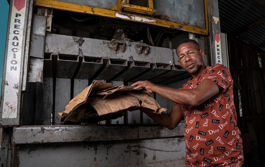 Pero la sostenibilidad medioambiental va más allá del campo y los cultivos. También hay negocios como el de Santos Manuel Báez, emprendedor dominicano que lleva 17 años dedicado al reciclaje. Un negocio sostenible con el que mantiene a su familia y da empleo en su comunidad. “Es un trabajo con el que ayudamos a la sociedad: el reciclaje es bueno para el medio ambiente”.